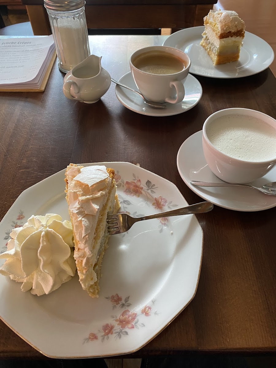 As you step inside, you’re greeted by the inviting aroma of freshly brewed coffee mingling with the sweet scents of delectable cakes. The café's ambiance is described by patrons like Mel K as "gemütlich" (cozy), offering a space where the bustle of the outside world fades away. The charm of the setting combined with the friendly service creates an atmosphere that invites you to settle in, sip on your favorite brew, and perhaps linger a little longer than you planned.